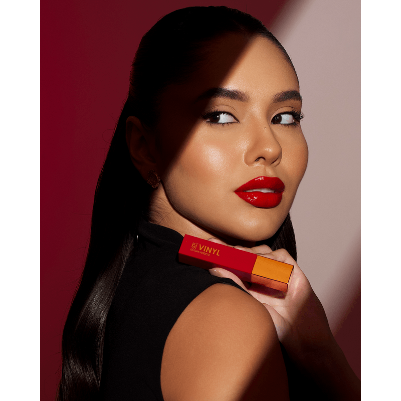 Batom vinílico flexível que adere aos lábios com alta fixação e sem escorrer após a secagem. Com acabamento vinílico espelhado que confere brilho intenso, ele entrega cor intensa desde a primeira aplicação, sem abrir mão do conforto. Sua fórmula inovadora garante até 16 horas de duração, com textura leve e sensorial de segunda pele.